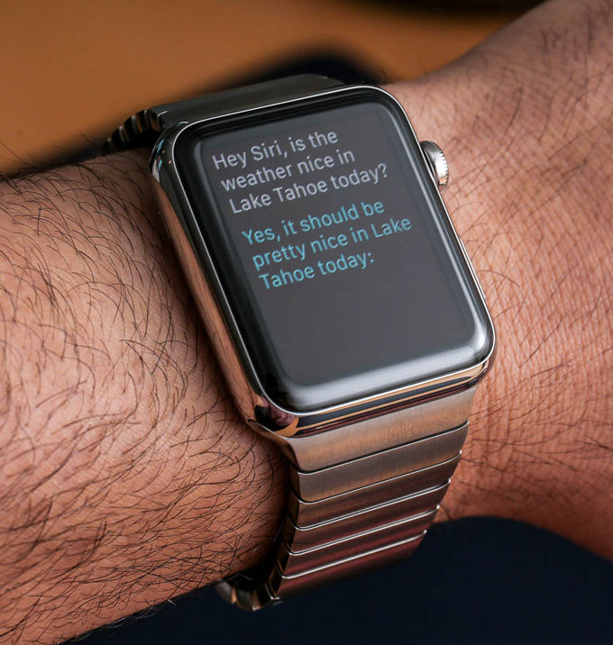 На Apple Watch нельзя будет печатать, но можно использовать все возможности Siri, включая диктовку. Устройство оснащено динамиком и микрофоном, поэтому беседа с гаджетом на руке все-таки станет обыденным явлением на ближайшие годы. При помощи Apple Watch можно отвечать на звонки, прослушивать или читать входящие сообщения или смотреть видео. Многие действия предугадываются устройством, например, ответ на входящее сообщение. Для этого собираются данные предыдущих бесед с тем или иным контактом.