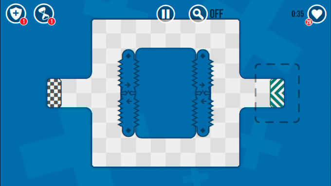 Кроме того, игрок может расположить палец немного в стороне от игрового поля, тогда его заменит точка на экране. Это позволит преодолеть трудные места, где важна точность каждого движения. Отметим также, что нет никакого смысла говорить о графике, поскольку ее тут практически нет или она схематична. А вот музыка вполне бодрая, хорошо вписывается в происходящее.