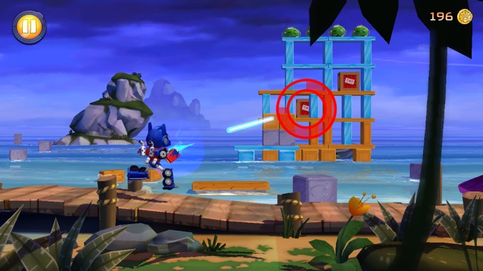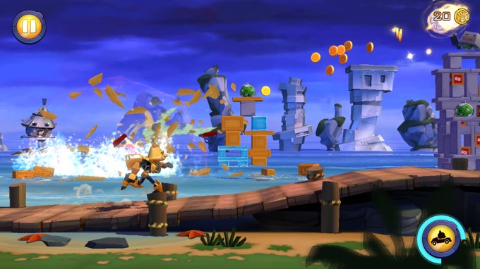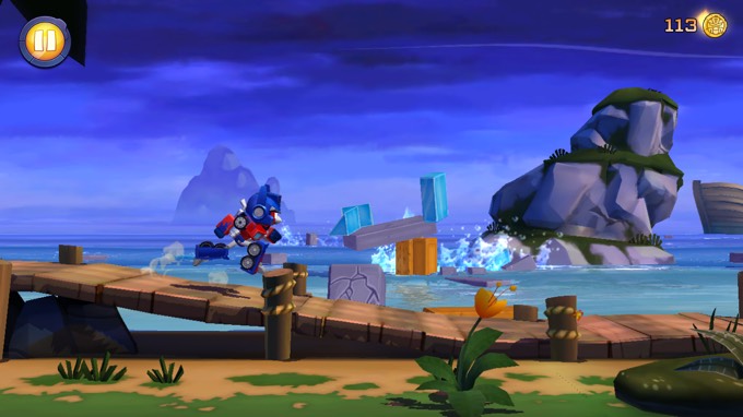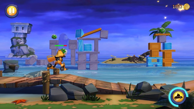 Итак, мы управляем трансформером, который долго и упорно бежит вдоль берега, а вдалеке среди воды расположились традиционные свинские укрепления. Больше нет необходимости регулировать силу и направление броска птицы, ведь трансформеры стреляют. Единственная задача игрока – выбирать цель, что называется, на ходу. По-прежнему в силе принцип «камень-ножницы-бумага», когда та или иная птица, читай трансформер, эффективна против одной из поверхностей: дерева, стекла или камня. Не забыли разработчики расставить и ящики с взрывчаткой.