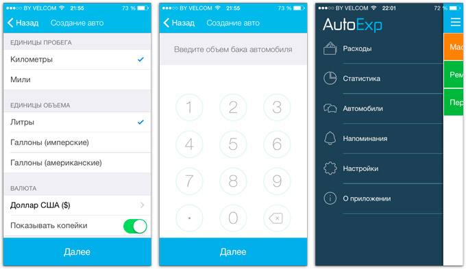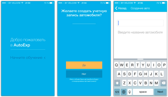 Первый запуск AutoExp сопровождается созданием профиля для вашего автомобиля. Достаточно ввести название профиля, например, марку и модель, а также указать объем топливного бака, чтобы приступить к работе с приложением. Если у вас в семье более одного автомобиля, а вам приходится следить за состоянием их всех, то полезной будет возможность вести сразу несколько профилей, легко переключаясь между ними.