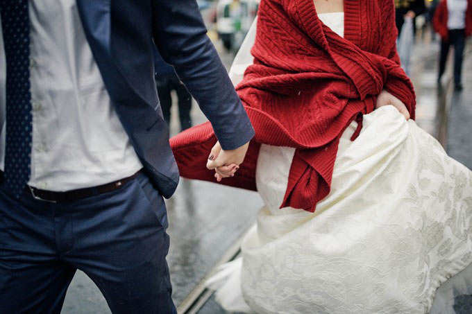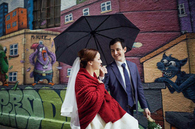 Через полчаса после начала съемок мы окончательно промокли и продрогли. Все-таки наши свадебные наряды не очень хорошо подходили для тех погодных условий, которые воцарились на улице в тот момент.