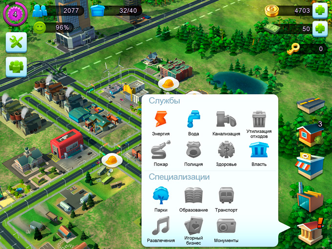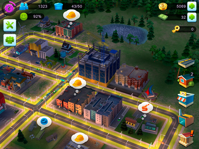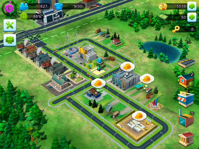 Дальше будет еще интереснее, когда жители обветшалых фургонов захотят улучшить свои жилищные условия. Для этого мэру срочно придется подогнать им еще ресурсов. Так в основном и будет проходить игровой процесс SimCity BuildIt. Разбавлена традиционная схема производства и использования ресурсов постройкой различных дополнительных структур. Электричество, вода, парки, школы, общественный транспорт — все это придется развивать и строить, но уже не за ресурсы, а за местную валюту симолеоны.