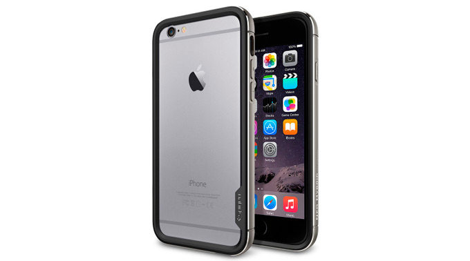 Начнем с универсального решения от Spigen, предназначенного как для iPhone 6, так и для iPhone 6 Plus. Neo Hybrid EX Metal — это не столько чехол, сколько бампер, защищающий, соответственно, грани смартфона. Рамка выполнена из алюминия, а потому способна пережить достаточно сильный удар, сохранив смартфон в целости и сохранности. Отметим также, что бампер слегка выступает над дисплеем и задней крышкой смартфона и защищает их от соприкосновений с поверхностями. При желании добавить защиты можно при помощи пленок, а индивидуальности — посредством цвета самого аксессуара.