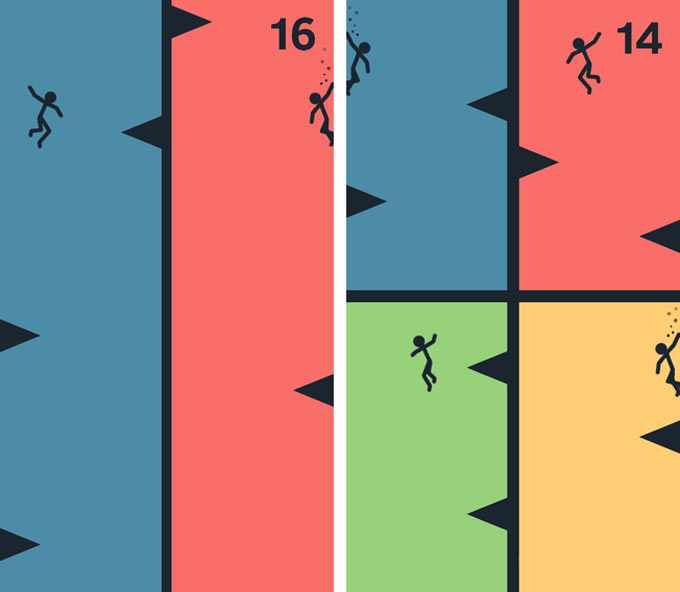 В игре Make Them Fall персонажу предстоит бесконечно падать вниз, избегая попадающиеся по дороге препятствия. Сложность игры в том, что управлять придется не одним, а двумя, тремя… Шестью (!) персонажами одновременно.