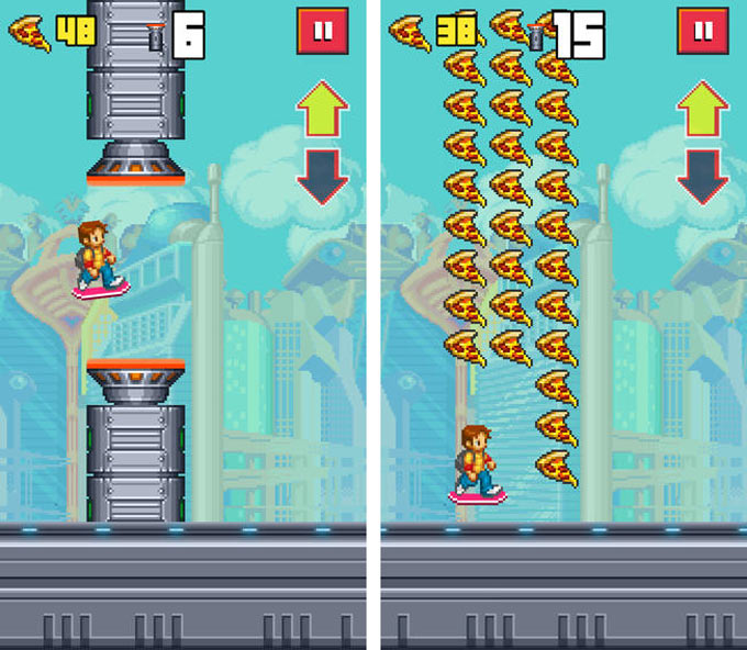 В фильме «Назад в будущее» главный герой рассекал на усовершенствованном летающем скейтборде – ховерборде. Этот спортивный инвентарь в сочетании с идеей птички Flappy и лег в основу игры Hoverboard Rider. Смельчаку на летающей доске предстоит увиливать от попадающихся на пути препятствий.