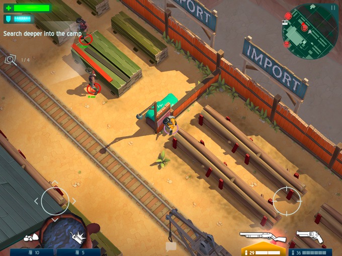 Игровой процесс оказался куда проще, чем он выглядел на предварительных скриншотах и в трейлерах. Игрок управляет маршалом по имени Барт, используя для этого два виртуальных стика. Левый отвечает за перемещения и некоторые действия, а правый за прицеливание и стрельбу. Тап в любом свободном месте экрана меняет режим перемещения: скрытный или обычный.