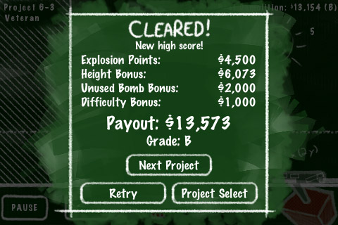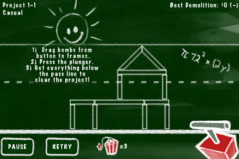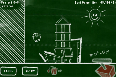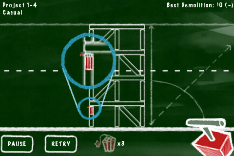 Смысл прост. Для победы в каждом раунде необходимо сносить здания таким образом, чтобы это нравилось заказчику. В большинстве уровней требуется разнести постройку буквально в клочья. Казалось бы, в чём тут сложность? Всего-то нужно подумать головой, прикинуть, что куда начнёт крениться и что куда отлетит после взрыва, установить заряды, нажать на кнопку… Но не всё так просто. Отдельные дома почти целиком построены из непробиваемого железобетона, а рядом с другими практически вплотную стоят другие дома, которые никак нельзя задеть. А при всём при том разрушения не должны быть меньше, чем в поле.