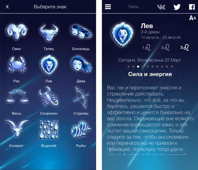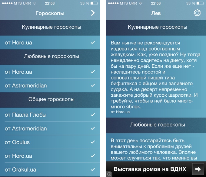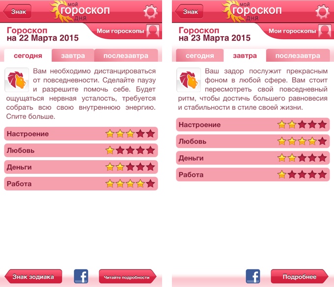 Это наиболее полный из всех возможных вариантов мобильных гороскопов. Он аккумулирует все самые известные астрологические ресурсы воедино, совершая рассылку в выставленное пользователем время. Круто, ничего не скажешь. Правда, с оформлением разработчики не сильно заморачивались.