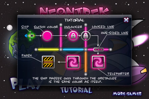 Мне всегда нравились игры отдельных отечественных и просто русскоговорящих разработчиков. Да и чего скрывать симпатии к компании Lemico, которая выпустила на iPhone такие вещи как Jaw и две части Gas Tycoon (вот первая и вот вторая)? Естественно, моей радости не было предела, когда на почту поступили два очередных промо-кода, один на Bad Santa! (а вот и обзорчик подоспел), второй – на скачивание игры Neon Trek, о которой и пойдёт речь ниже.