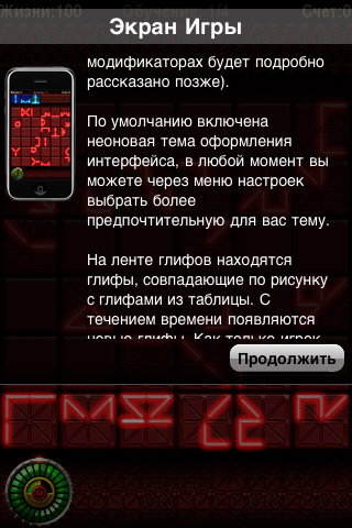 В деле очищения своеобразной операционной строки наверняка поможет ряд различных бонусов, о которых в основном и ведётся речь в безумно долгом учебном пособии, которое многие из игроков не осилят, окажутся совершенно правы, а в процессе игры будут удивляться каждому новому открытию, которое могло бы стать известным ещё до перехода к выбору режима. В целом приложение сработано на твёрдую четвёрку, что обязательно должно порадовать русскоговорящих владельцев iPhone, так как разработчик думает на одном с нами языке.