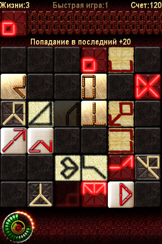 Собственно, пару плюсов отметили, минус единственный выявили, теперь можно и к делу приступать, к описанию самого главного – игрового процесса. Смысл заключается в том, чтобы, используя странный какой-то инопланетный язык (если быть более точным, то письменность), подбирать пары выскакивающим справа символам, тем самым сокращая цепочку этих символов. Ничего не понятно? Представьте себе калькулятор, в операционной строке (сверху, циферки в которой значатся обычно) которого символы различные появляются сами по себе, и чтобы привести всё к порядку, удалить их, необходимо наживать одну из кнопочек на циферблате. Нажали правильно – одержали небольшую победу, ошиблись – обижаться кроме как на самого себя больше не на кого. Вот, собственно, и весь смысл.