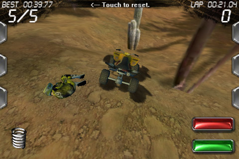 Графика на высоте, скорость смены кадров хороша даже на 2G/3G, что должно порадовать пользователей первых двух поколений iPhone. Звук? Звук как звук, тарахтение двигателя нашего болида кажется каким-то мультипликационным, но с этим уже ничего не поделаешь. Больше всего подивила физика. Дело в том, что у меня не раз получалось проехать насквозь различные преграды. Такие как: столбы, кактусы, всевозможные шесты, колонны и даже синие кабинки передвижных туалетов. Выглядели мои опыты прохождения сквозь стены, мягко говоря, странно. Однако, это, опять же, проблема разработчика, который, как надеется добрая половина игроков, исправит данную недоработку в следующей версии. А то гонять по грязным просторам временами интересно только по той причине, что приходится гадать “пропустит или нет?”