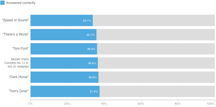 Теперь взглянем на сами треки. Самым простым для восприятия оказался Tom’s Dinner, а самым сложным – Speed of Sound.