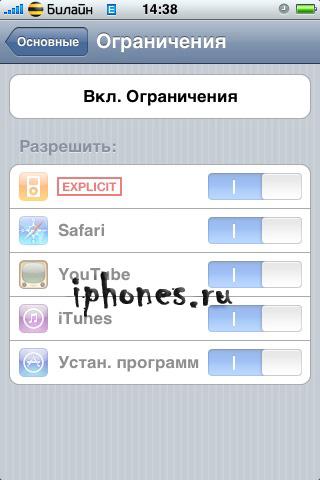 Появился родительский контроль для различных приложений, таких как iPod, Safari, YouTube, iTunes и для установленных программ из App Store.