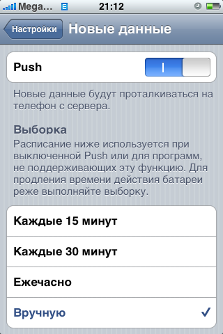 Так-же в телефоне реализована Push-технология (особенно актуальная на моем Мегафоне)