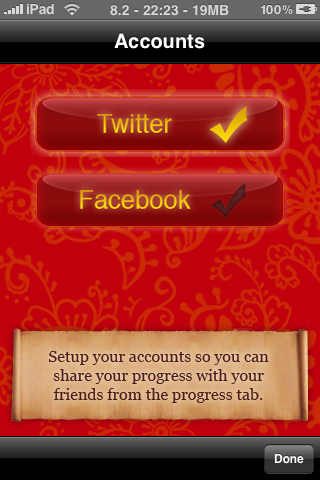 Для этого тыкаем своим пальцем на «setup» и вводим данные своего аккаунта в Twitter и FaceBook.