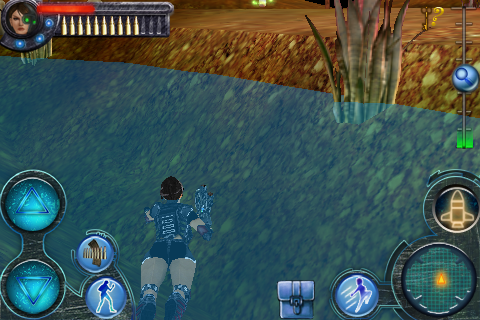Помимо движения и прицеливания в игре есть и другие действия: прыжки и смена позиции на сидячую и лежачую. Если прыжки имеют очевидную необходимость, когда противник подошел слишком близко, то назначение смены позиции так и осталось для меня тайной. Вы так же сможете найти кнопки перезарядки и запуска подствольной ракеты, которая крайне эффективна против группы монстров или босса. Попадая в воду, так же плохо нарисованную, как и огонь, вы автоматически начнете плавать.