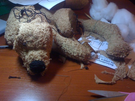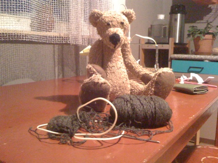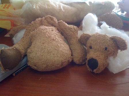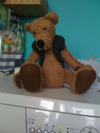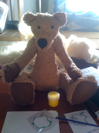 Медвежонок и его одежда сделаны вручную. Фото, сделанные в процессе изготовления, вы можете увидеть ниже.
