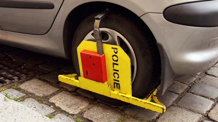 Часто на колесо вешается специальное приспособление, которое обездвиживает машину. Избавиться от него возможно только оплатив штраф.