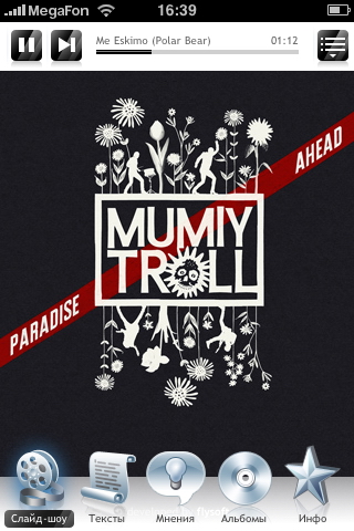 Дебютным Appbum’мом стал английский альбом группы Мумий Тролль «Paradise Ahead». Это стало возможным благодаря готовности группы к инновациям. Отдельное спасибо так же компании Content Chaos.