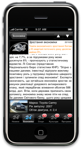 Разработка новостного сервиса телеканала «24» для iPhone, прошла интересно и, что удивительно, довольно гладко. Первым делом ознакомились с пллатформой iPhone. Очень порадовало то, что компания Apple установила одинаковые правила для всех программеров. Изучили правила и SDK, и команда приступила к работе.