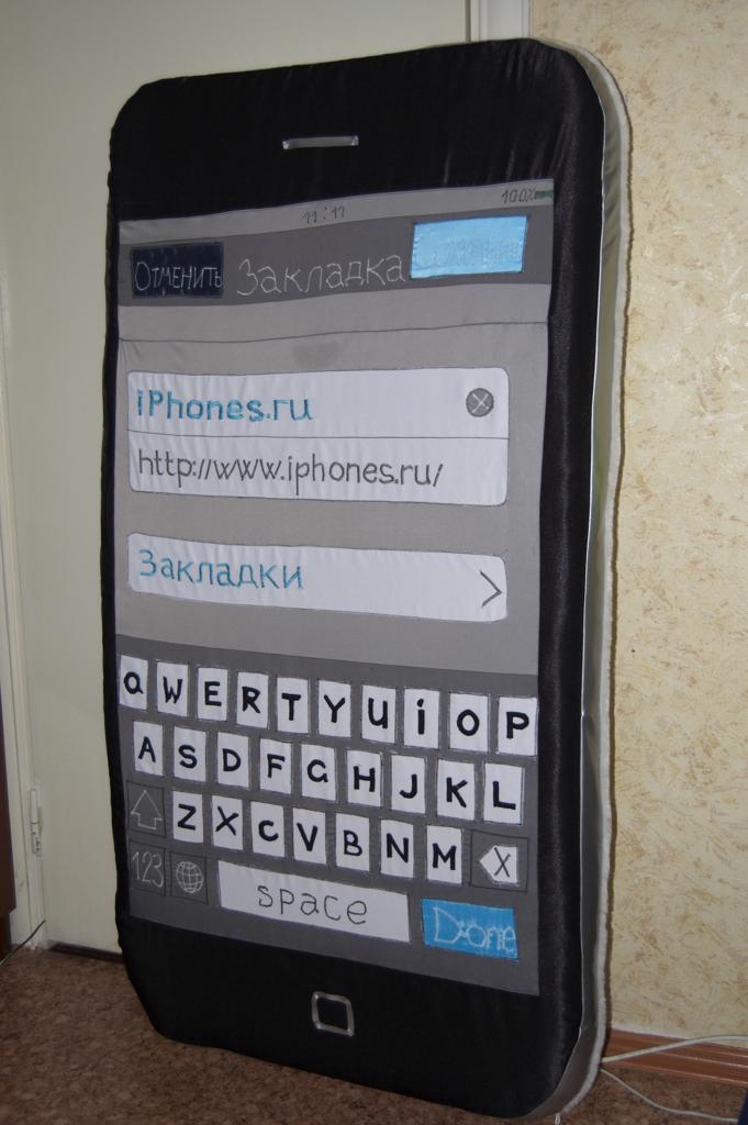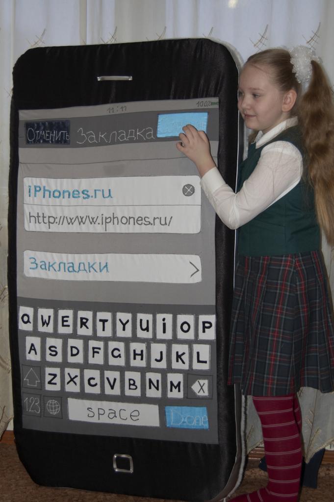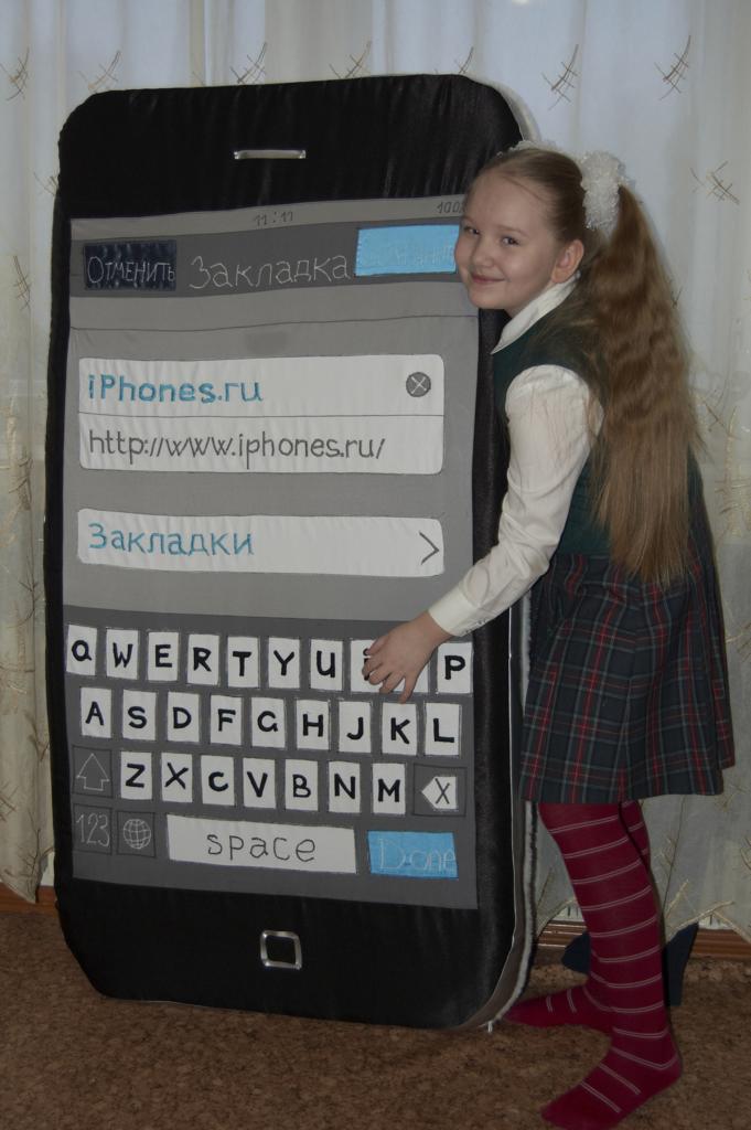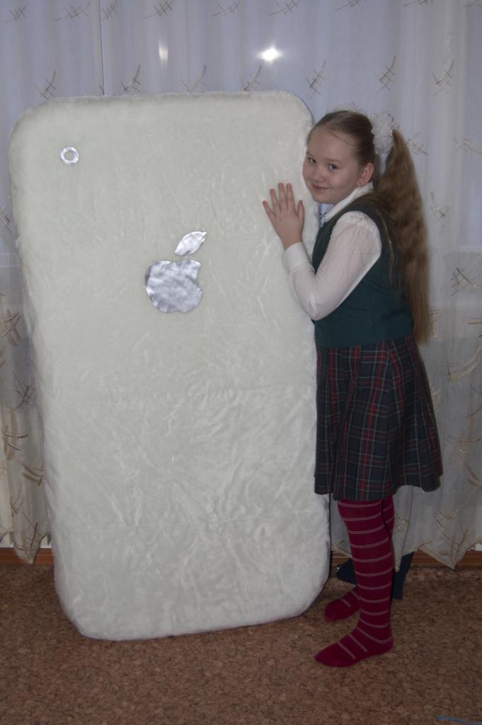 Посмотрев мою работу вы сможете судить о том, до каких размеров доросла моя мечта об iPhone 3gs (для сравнения, я сфотографировала его рядом с моей дочкой – первоклассницей), больше чем в 13 раз.