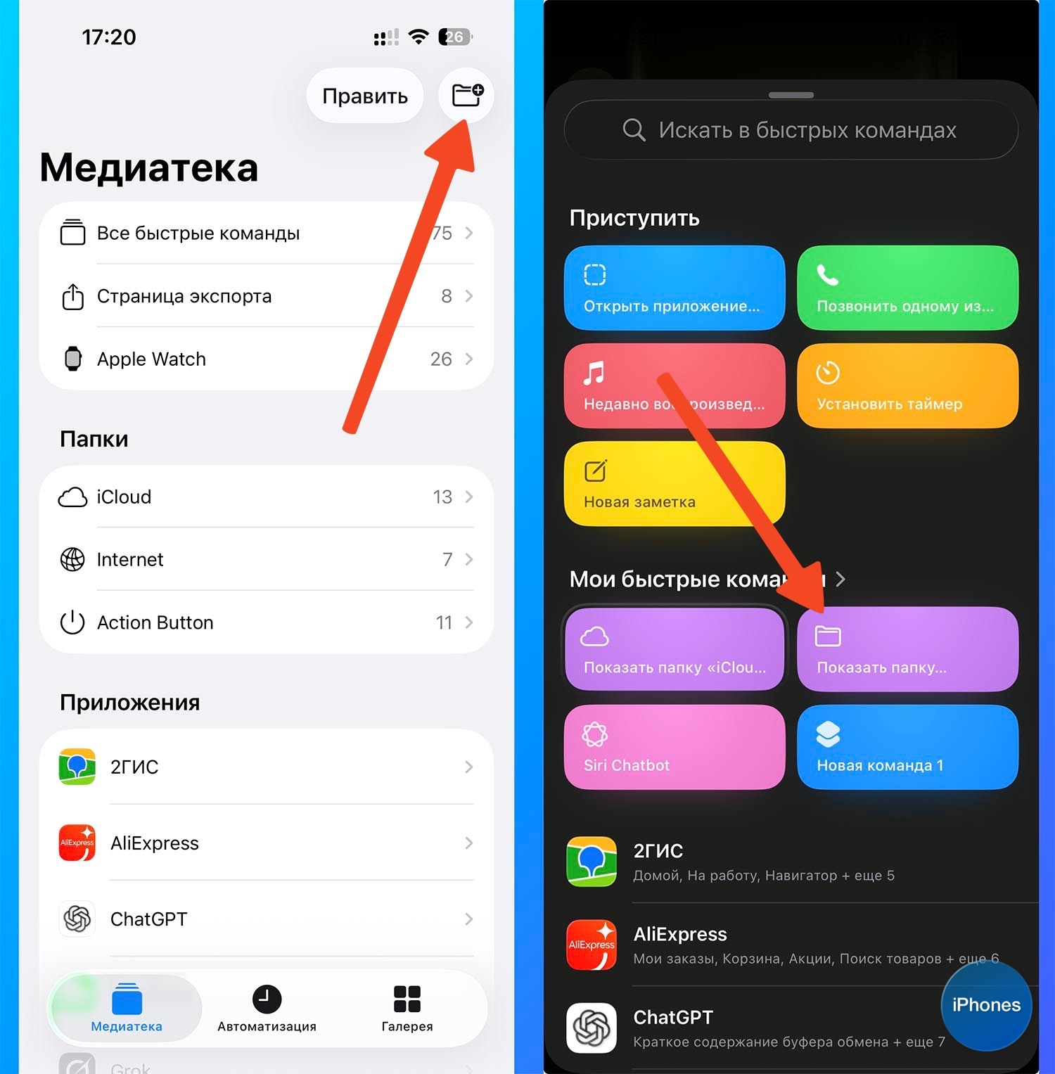 ▶ В приложении Команды создайте папку и поместите все нужные команды в нее.