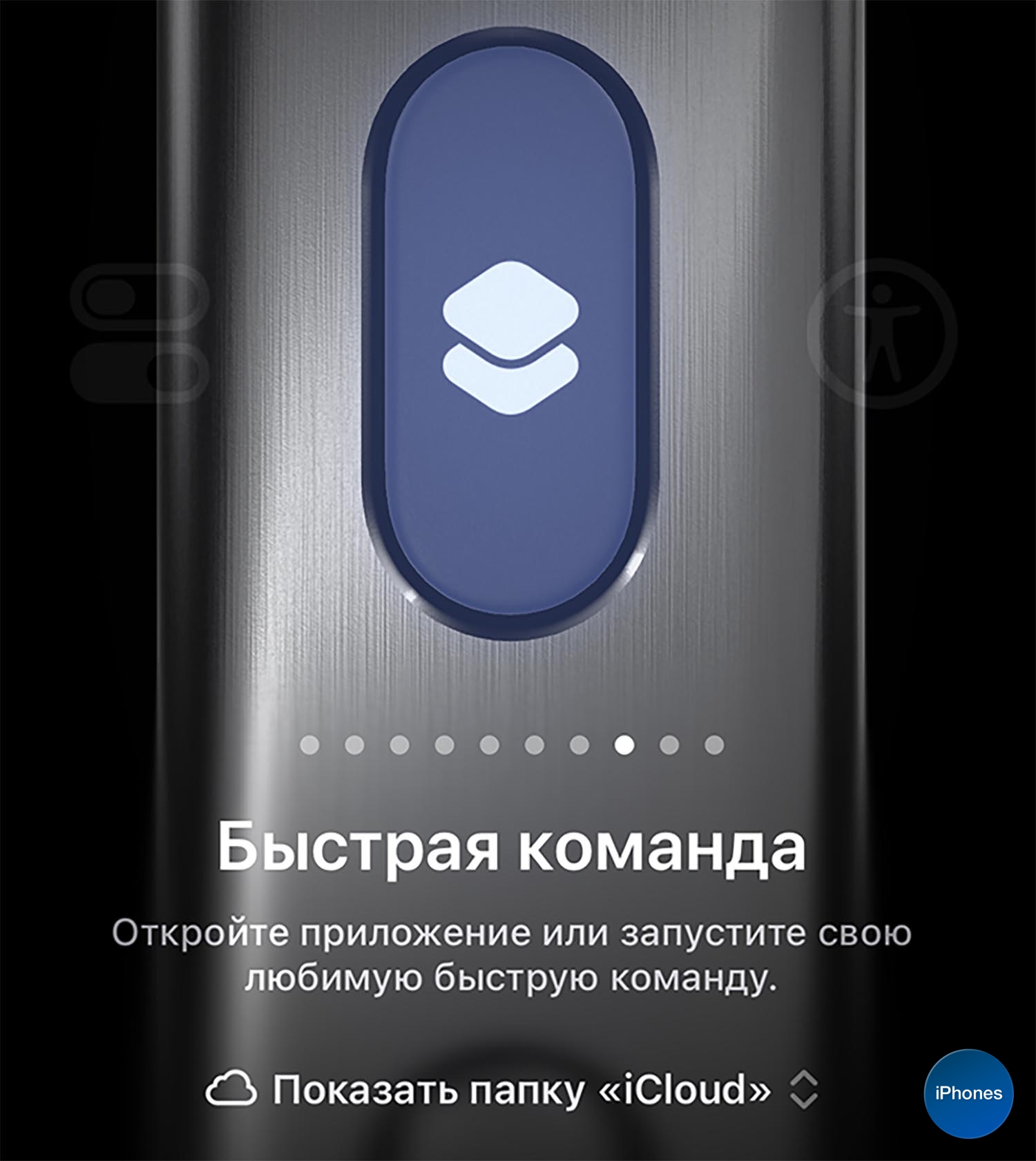 ▶ В разделе Настройки – Кнопка действия выберите действия Быстрая команда и укажите скрипт Меню с командами.
