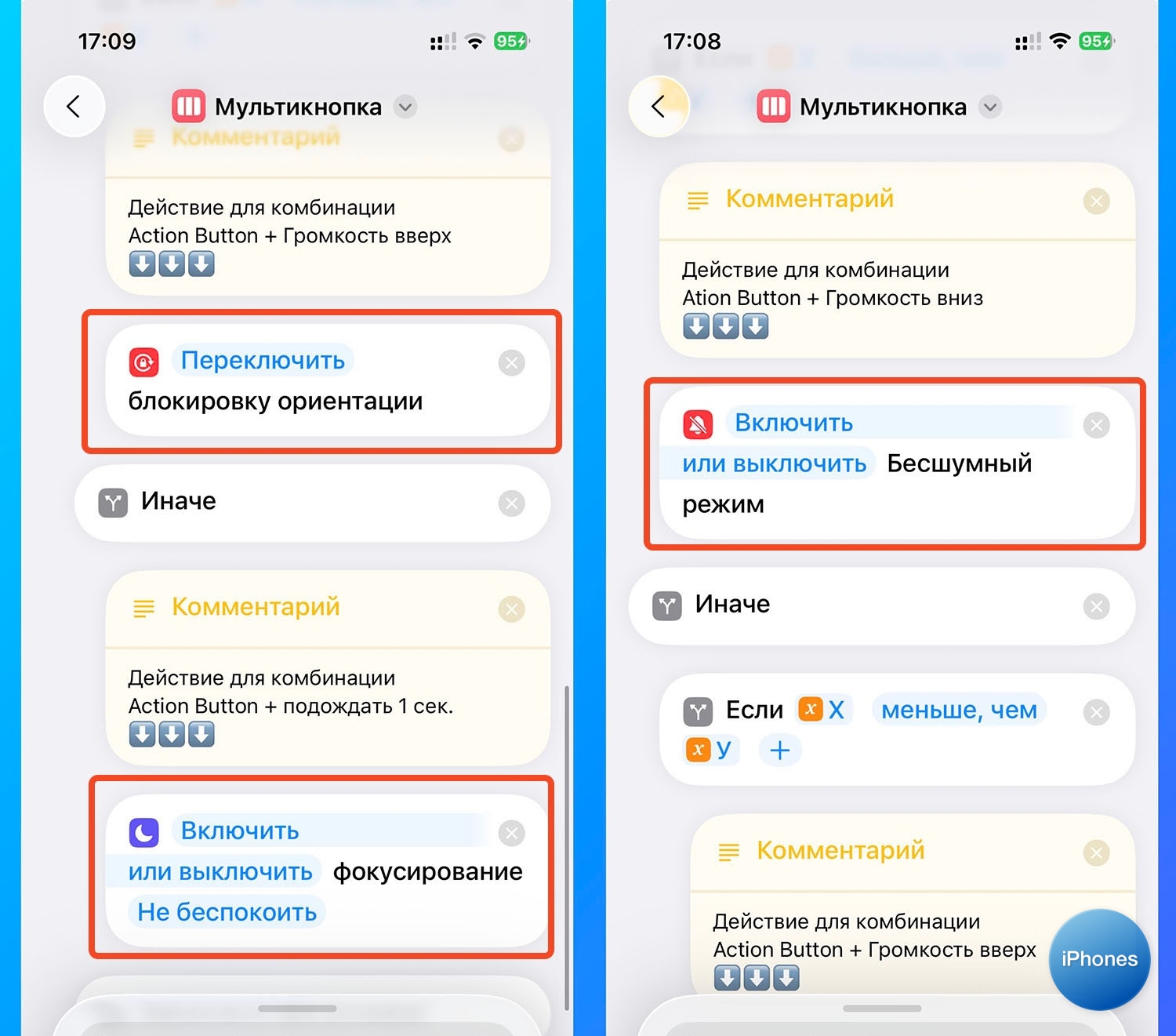Теперь, когда вы знаете 5 способов повесить на Action Button разные действия, можете комбинировать их. Для этого придется сделать свою команду с разными условиями.