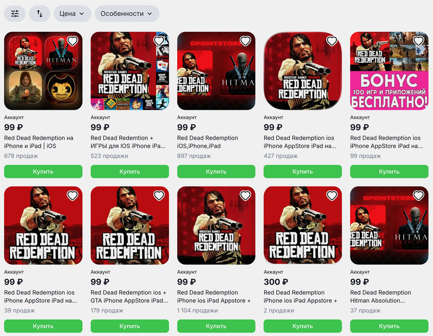 Учетки с большим количеством игр продаются на популярных площадках. Найти их не составит никакого труда. Обычно доступ дают на несколько часов или сутки, нужно успеть выкачать с аккаунта все нужные приложения, затем доступ закрывают, а пароль меняют.