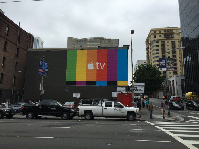 В рамках продвижения своей телевизионной приставки Apple TV компания усиливает её рекламу. Демонстрационных видеороликов на YouTube-канале Apple оказалось недостаточно, поэтому яркие плакаты появились на билбордах в США, где были замечены жителями Лос-Анджелеса, Нью-Йорка и Колумбуса. Подобный способ популяризации своей продукции компания использовала для Apple Music и iPhone 6.