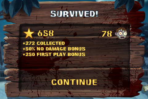 Наконец, о графике и в принципе о мультимедийной составляющей. Всё просто потрясающе! Вообще, первое, что замечаешь после запуска игры – это очень мягкий, приятный и оригинальный звук. Редко такое встретишь сегодня, поэтому игру в Zombie Smash без звука смело можно считать признаком плохого вкуса. В идеале понадобятся наушники, но если никому не помешаете, а только порадуете забавными чавканьем и хрустом, то можно и без гарнитуры обойтись. И не забудьте прибавить громкости!