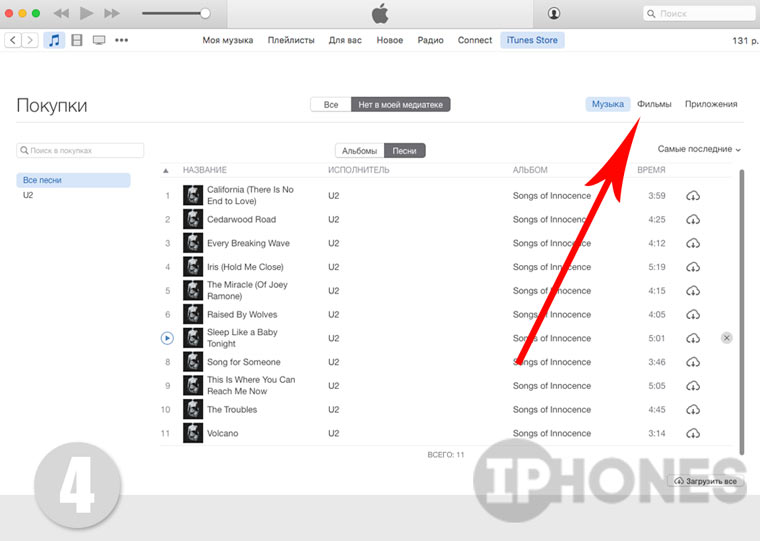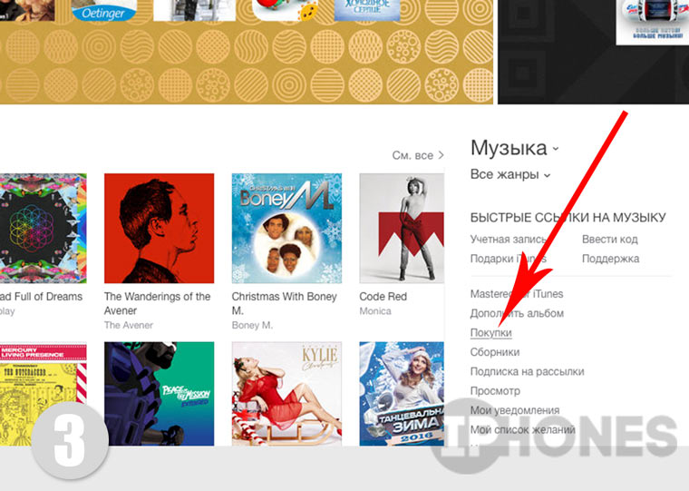 - С главной странице iTunes Store перейдите в Покупки.