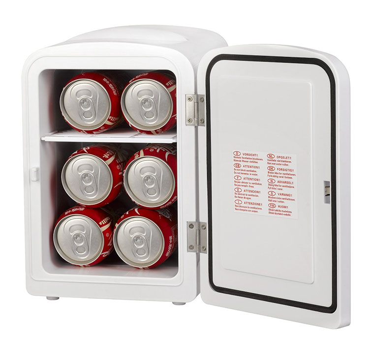 Зачем тащить свою задницу в офисную кухню за охлажденным напитком? Вот компактный холодильник на шесть жестянок с колой и пивком. Для авто тоже подходит.