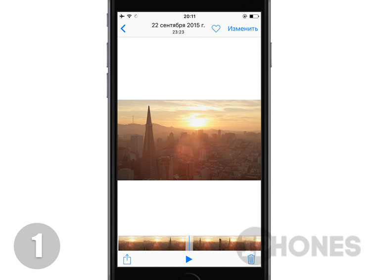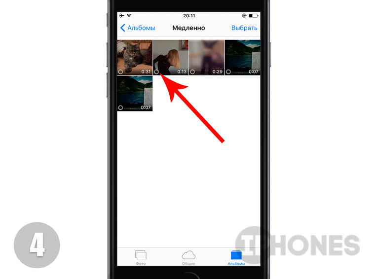- В Галерее откройте любое видео, снятое в режиме Slo-mo. Если забыли какое видео снято именно в этом режиме, обратите внимание на характерную пиктрограму-круг, либо загляните в категорию Медленно.