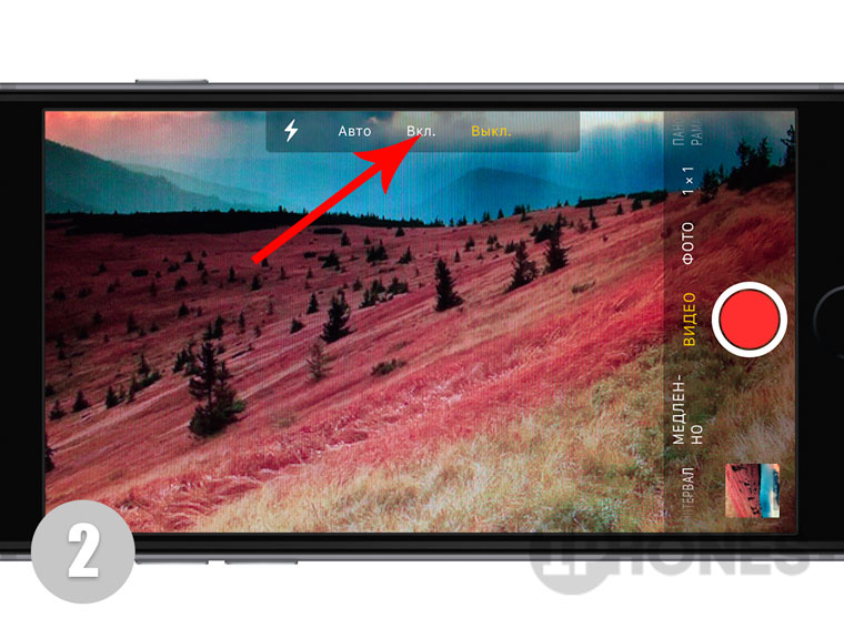 Как включить вспышку во время видеосъемки? В два касания: