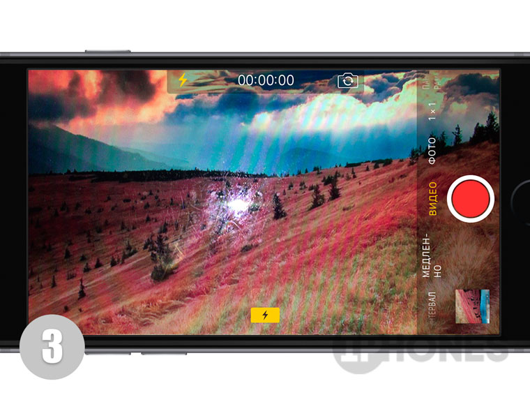 - Запустите приложение Камера в режиме Видео.