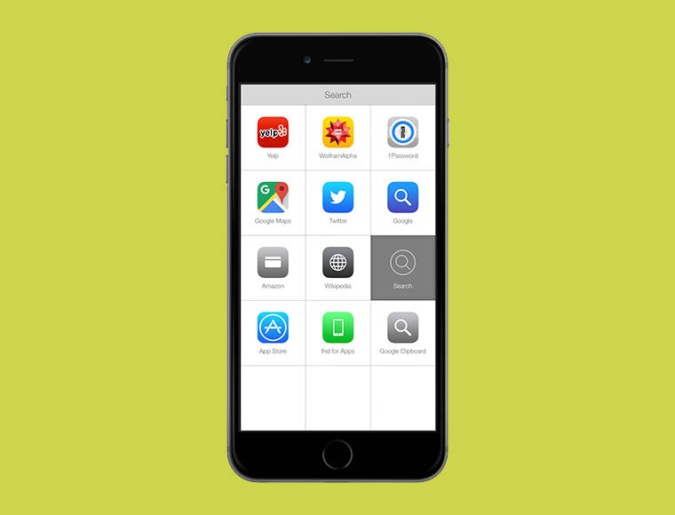 Приложение позволяет начать поиск нужного слова или фразы в любой поисковой системе. Изначально доступен поиск в Google, Wikipedia, Google Maps, Wolfram Alpha, App Store, Amazon и 1Password. Можно сразу искать по находящемуся в буфере обмена тексту или добавлять свои поисковые системы.
