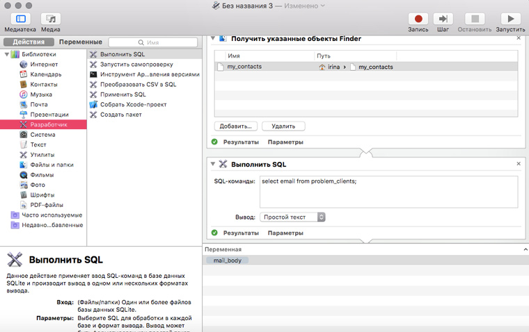 Инструкция. Как в Automator использовать данные из базы SQLlite