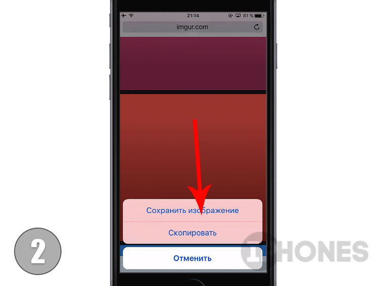 2. С iPhone откройте сайт imgur.com и выберите любые из понравившихся обоев. Удерживайте палец на изображении до появления всплывающего меню, в котором тапните по пункту Сохранить изображение.