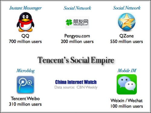 Tencent – крупнейшая китайская интернет-компания, которая владеет мессенджерами QQ (800 млн человек) и WeChat, множеством игровых платформ и самой крупной местной социальной сетью QZone. Кому-то будет интересно, что основатель Tencent приобрел 10,26 % акций фонда DST, который отвечает в Mail.ru за иностранные инвестиции.