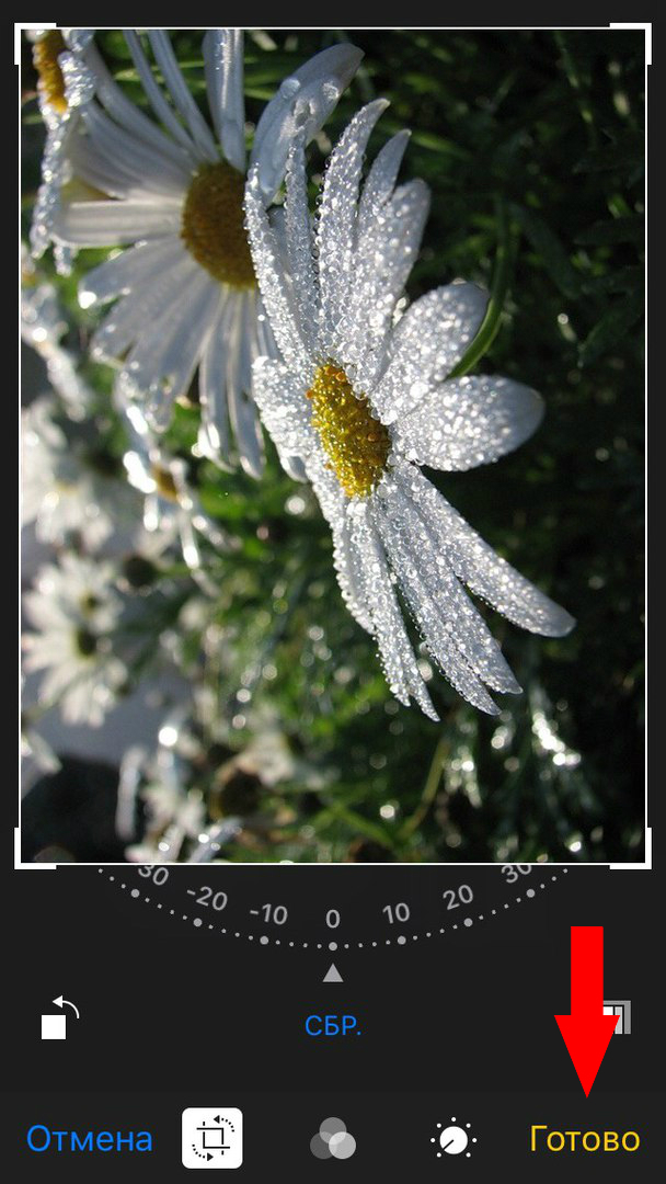 3. Ткни на кнопку поворота фотки и поверни её ровно на 90 градусов.