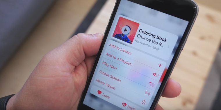 Намного приятнее управлять композициями и альбомами в приложении Музыка. Здесь поддержка 3D Touch реализована с целью быстрого добавления композиций в коллекцию и навигации по плейлисту.