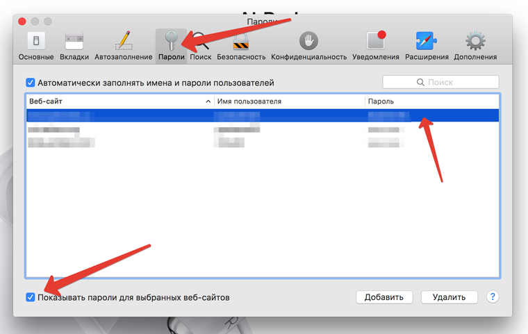 1. Запустите браузер Safari откройте пункт Safari —> Настройки и перейдите на вкладку Пароли.