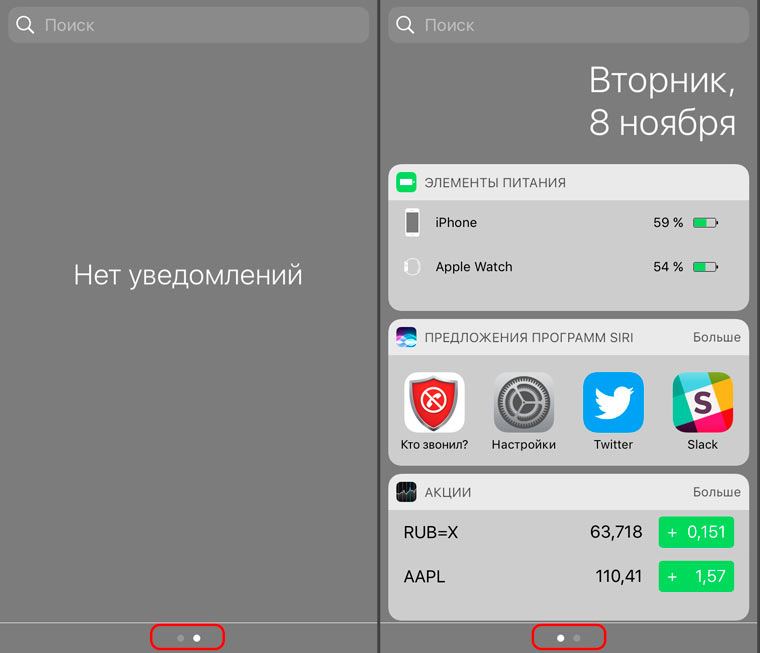 Если при вызове Центра уведомлений каждый раз приходилось переключаться между Уведомлениями и Виджетами (по умолчанию установлены уведомления), то теперь это меню запоминает последний выбор. Если для вас приоритетнее Виджеты, как раз, вызываю данное меню вы будете попадать именно в Виджеты. Также и для уведомлений.