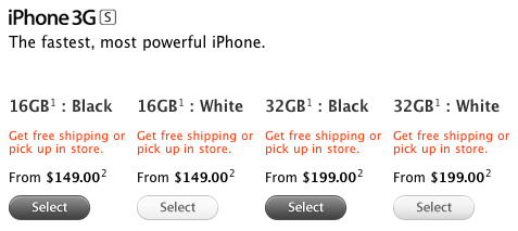 Теперь версия на 16GB стоит $149, а 32GB – $199. Столь вкусные цены действительны лишь при заключении контракта с AT&T. Так же в Apple Store прекратили продажу iPhone 3G 8GB, что позволяет с уверенностью заявить – модель снята с производства. Чуть ранее сеть американских гипермаркетов WalMart сбросили цену на 3Gs 16GB – $97, так что предложение Apple не является наиболее выгодным.