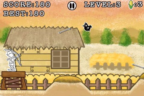 В этой игре вам тоже придется выступить в роли лучника, но на этом сходства заканчиваются. Во-первых перед нами двухмерная картинка, показывающий все действо сбоку. На выбор дается один из трех режимов, каждый их которых отличается своей стратегией, но все они схожи в одном – наш герой будет стоять в левом нижнем углу и поражать объекты, находящиеся напротив него, а для стрельбы будет использоваться лук. Чтобы выстрелить, натяните тетиву, проведя пальцем по экрану справа-налево.