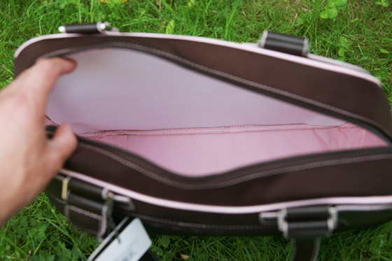 Сумочка тоже женская, о чем свидетельствует розовый цвет внутренностей.