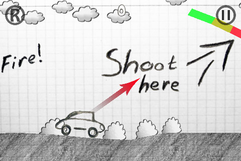 Стрелять можно, отжимая стрелку рукой или же проводя пальцем по экрану. Раз от разу карты становится все более сложными, кое-где машина даже едет вверх колесами, но это только добавляет фану в общий котел.