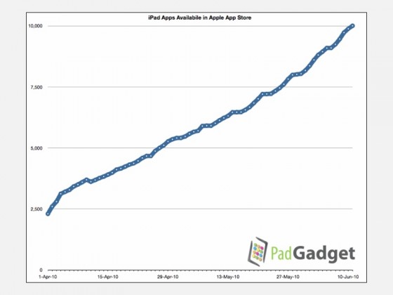 iTunes App Store теперь содержит более девяти тысяч, а именно 10 000 приложений, созданных для iPad, спустя почти 10 недель после выхода.
